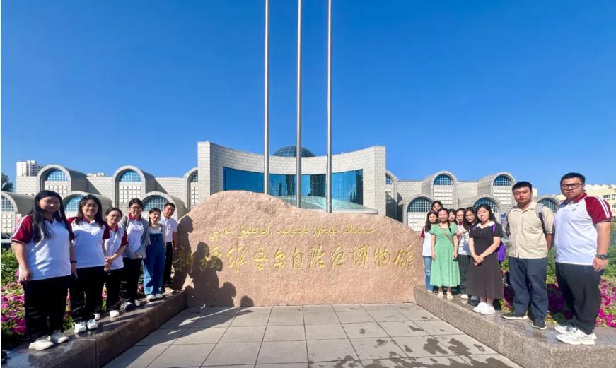 8月10日,新疆研学之旅的第七天,文学院师生一行人走进了新疆维吾尔自治区博物馆,在博物馆的陈列与讲解中,追溯西域千年过往,在文物遗存间学习新知识,触摸历史真实的纹理。 清晨,怀揣期待,师生们踏入新疆维吾尔自治区博物馆。这座矗立着的文化宝库,静静陈列着西域千年的时光碎片。从远古石器到丝路文物,从民俗展品到宗教遗存,每一件文物都似无声的讲述者,等待师生们聆听其承载的故事。历史溯源:从石器到丝路的文明脉...