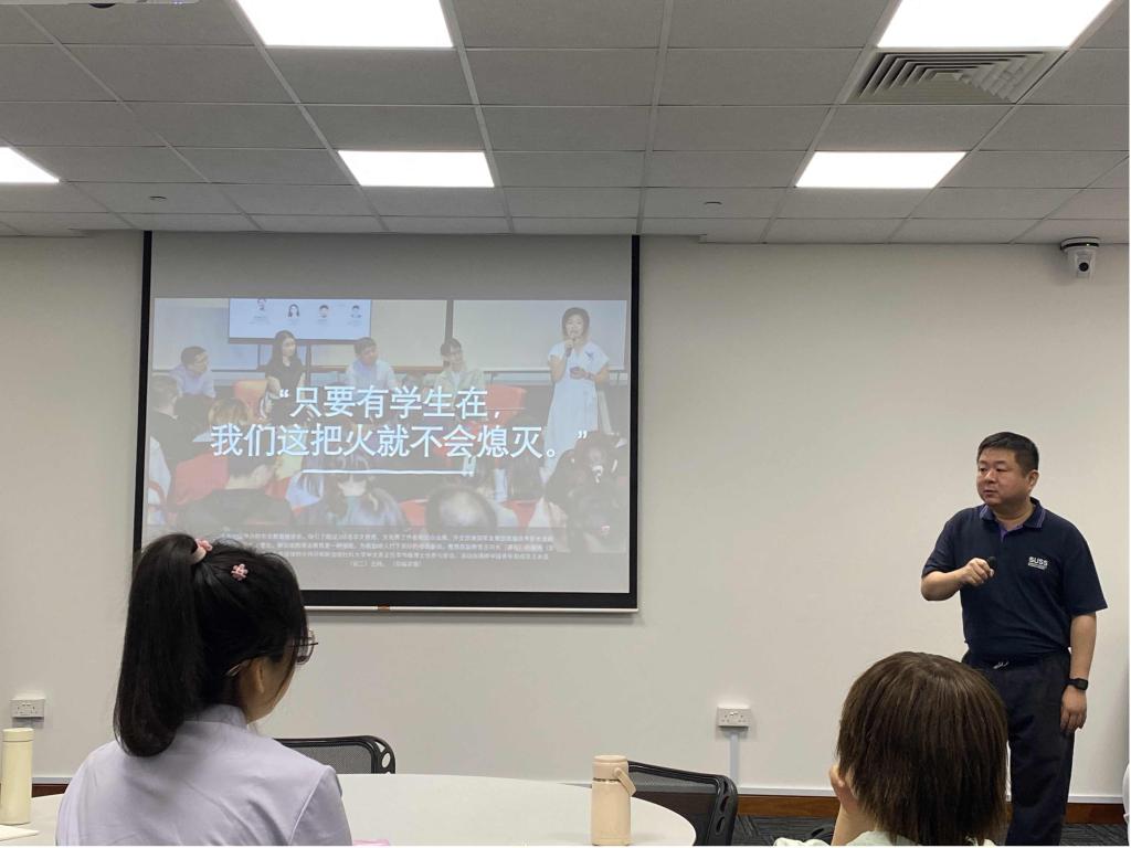 华文作为新加坡的母语之一,其教学实践始终处于多重政治、经济与文化力量的交汇点。伴随双语政策的推行、英语强势地位的确立,以及年轻一代语言使用习惯的转变,华文教育面临一系列现实挑战——从教材内容到师资结构,从家庭支持到社会认同。李博士进一步提出,21世纪的新加坡华文教育,应在传承语言能力的同时,更注重文化认同与价值理解的养成。讲座现场气氛热烈,教师代表就双语教育中的文化传承机制、华文教材等问题与李博士展开深入探讨。