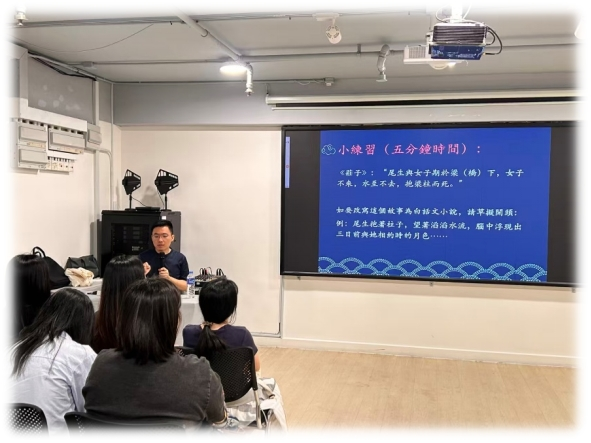 午餐后,同学们先来到了香港星光行大厦,聆听了两场精彩的课程。首先是香港大学中文学院博士,现任香港都会大学人文社会科学院创意艺术系系主任,助理教授邵栋老师带来的小说专题讲座,紧密围绕小说开头方式的讲授,带领同学们进行一场冒险的开始!
