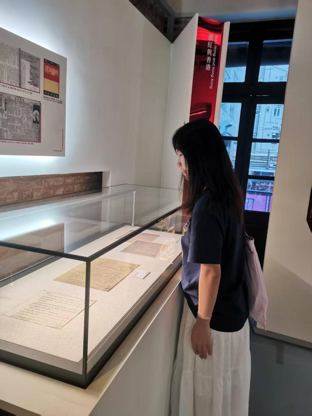 展馆内,同学们神情专注。或驻足展柜前,细观张爱玲手稿与金庸笔记,不时提笔记录感悟;或围听讲解,深入探寻香港文化发展脉络。学习间隙,大家举起手机拍摄,定格与经典对话的珍贵时刻,尽显对文化传承的珍视。