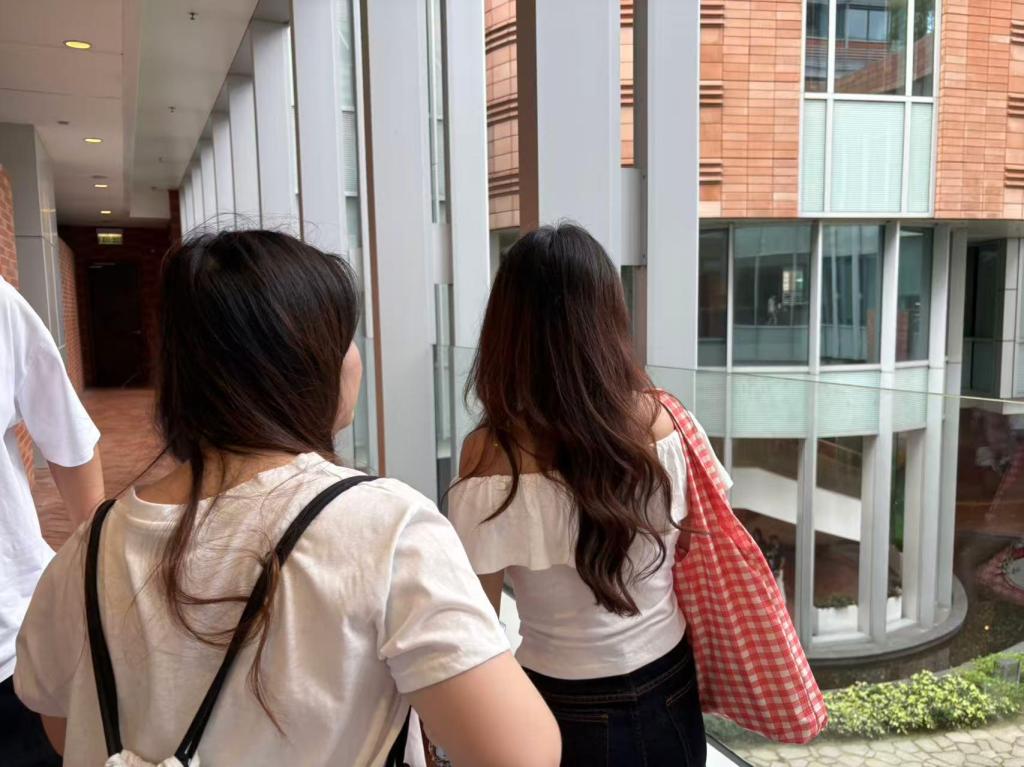 站在二层回廊远眺,校园景致尽收眼底。红砖楼宇与现代建筑错落有致,彼此呼应,既承载着百年学府的历史厚重,又彰显着与时俱进的活力。绿树成荫的步道蜿蜒其间,学子们三三两两穿行于教学楼之间,或交谈,或匆匆赶课,为静谧的校园注入了青春的律动。