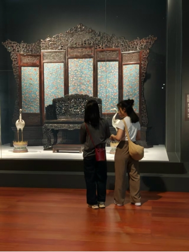 10月20日上午,同学们走进了香港故宫文化博物馆。这座融合朱红宫墙元素与现代玻璃幕墙的建筑,在维港光影中诉说着古今交融的故事,成为此次课程实践最难忘的文化印记。