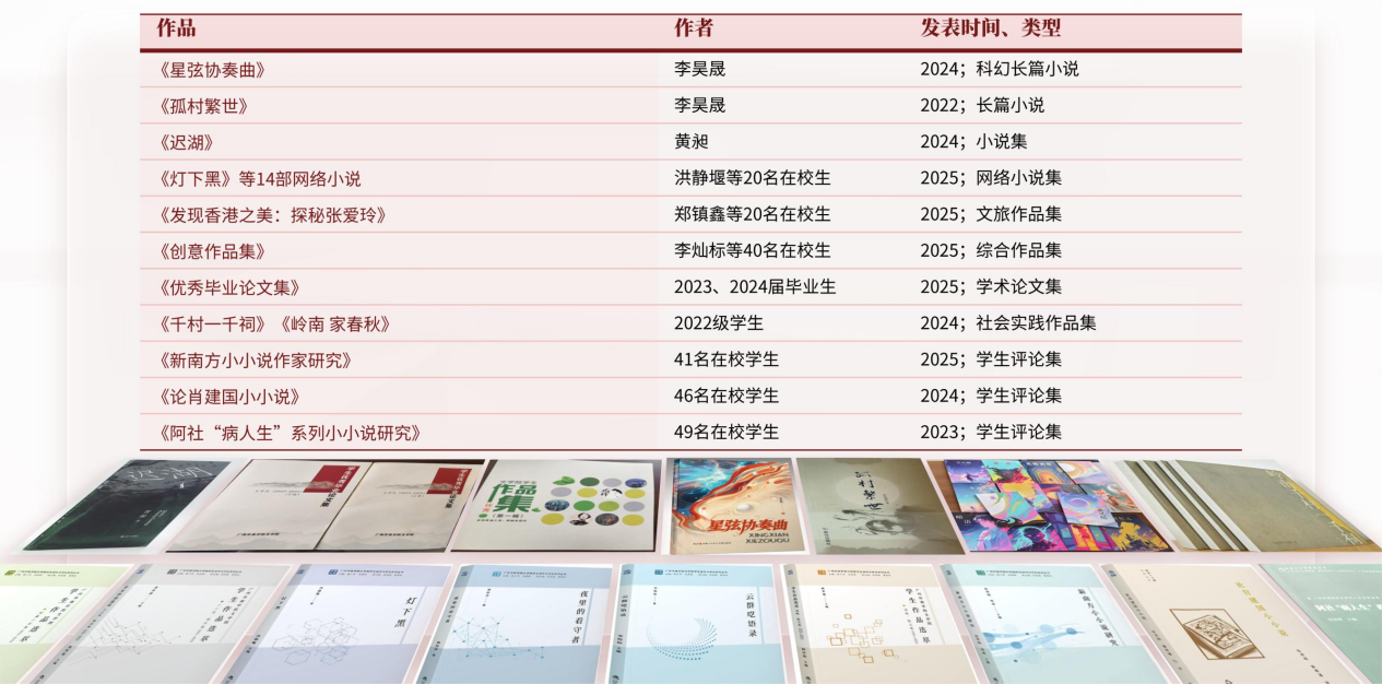 200+名学生在区级以上文学比赛获奖,80+项写作竞赛奖项(如全国大学生“野草文学奖”)出版《灯下黑》等网络小说、剧本,多部作品签约或连载