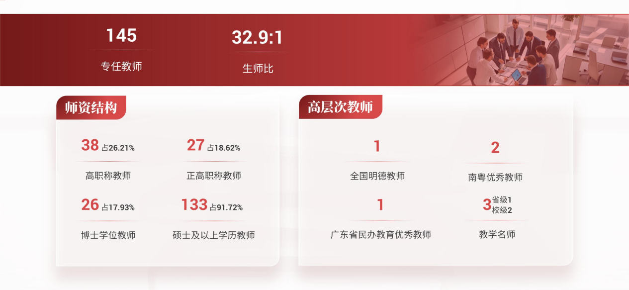 ·高层次教师占比:26.21%(含全国明德教师、南粤优秀教师)