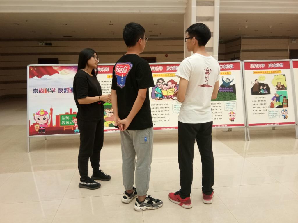 各学生党员在观看展览时,都认真地思考着恐怖主义、邪教组织对于社会的危害,有的还彼此交换意见,讨论着自己心中对于恐怖主义、邪教组织的印象。还有些党员同志上前与何顺发老师一起观看展览并作进一步交流,以加深对本次展览内容的了解。