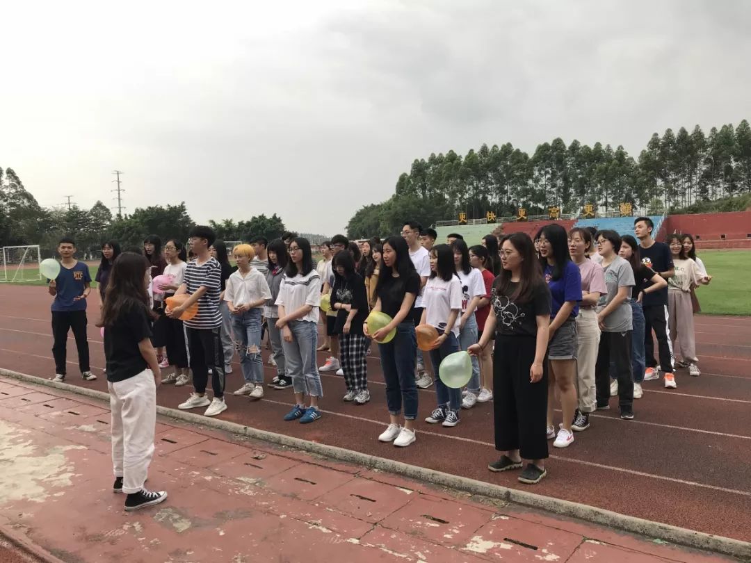 首先,17级新闻学2班的同学们在西区操场整齐有序地排着队伍,手上拿着五颜六色的气球,这是在干什么呢?原来是在齐唱团歌,每个同学脸上的笑容洋溢着青春的气息,高昂的歌声展现出了大家对党团的赤诚之心。