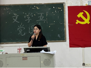 为了提高党员同志们的思想理论水平,牢记初心与使命,立足百年大党新起点,接力百年奋斗新征程,文学院学生第五党支部于2022年5月27日下午16:00在励志楼B204开展党课。本次党课由文学院学生第五党支部书记覃宝宾老师进行授课,黄嘉莉同志主持。