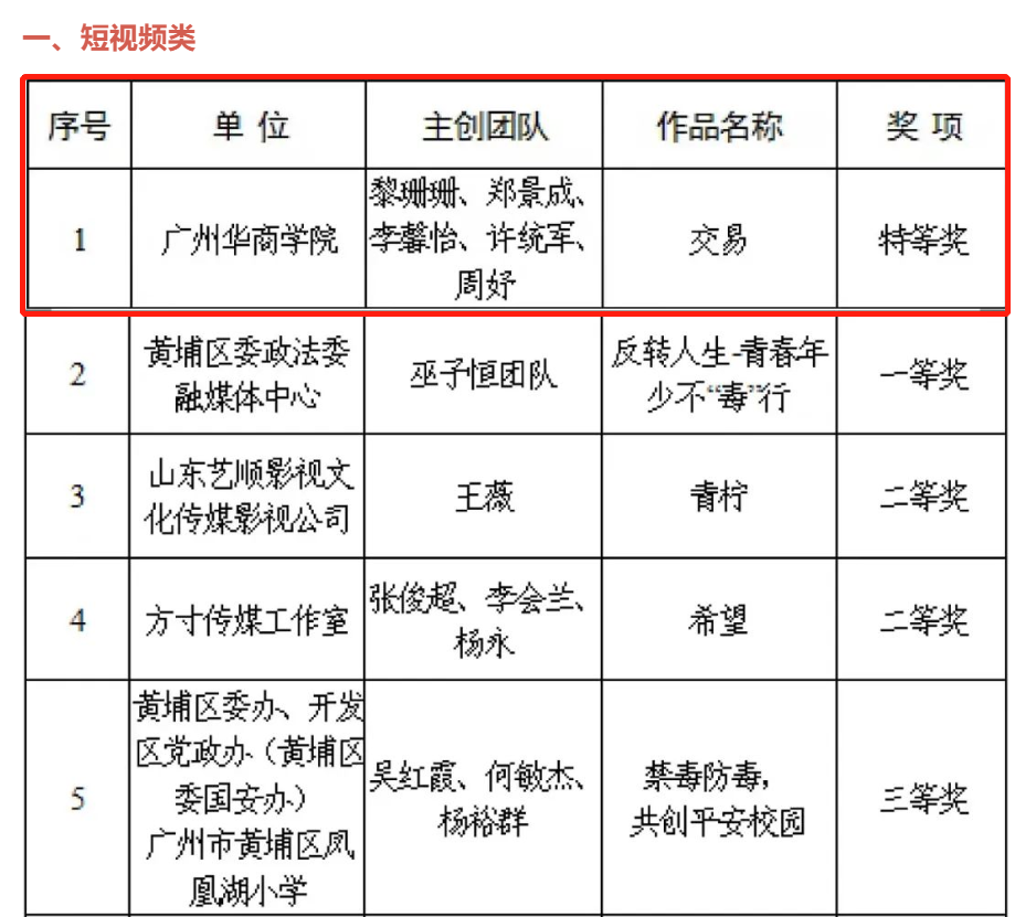 作为拍摄本次《交易》短片的导演兼编剧的黎珊珊同学说:“很荣幸能获得这个奖项,这对我们团队来说是个很大的激励。这次我们团队之所以能荣获此奖,除了小伙伴们齐心努力的协作,也仰赖于学校和各位老师的指导与支持,我们将不忘初心,继续创作出更多高质量的短视频作品。”