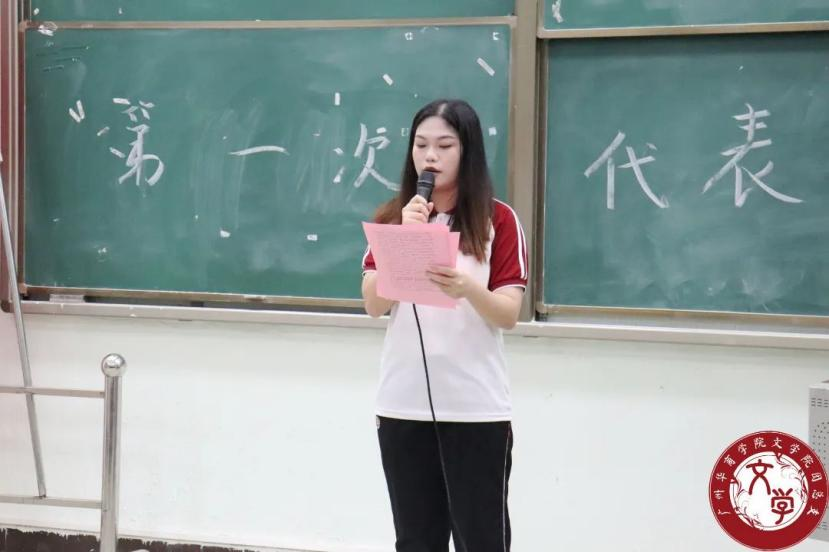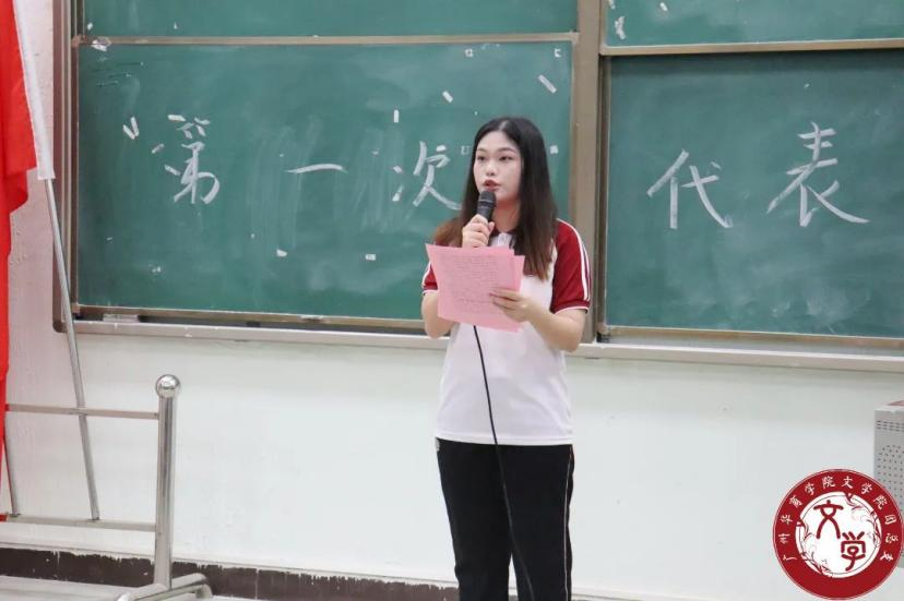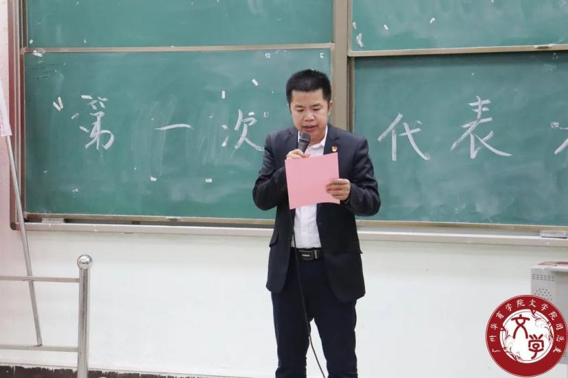 大会第二项议程,由校团委陈刚书记宣读《关于同意召开共青团广州华商学院文学院第一次代表大会的批复》。