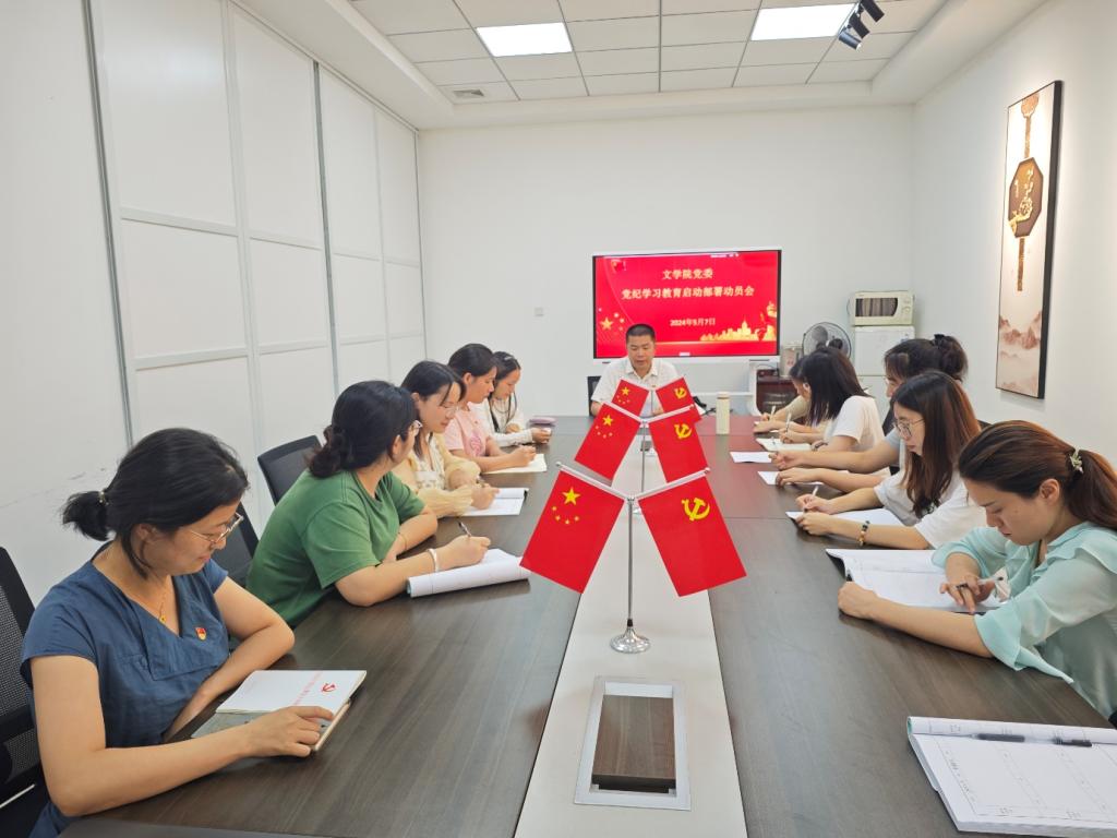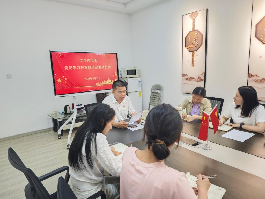 5月7日下午,文学院党委在厚德楼A101会议室召开党纪学习教育部署会议。文学院党委副书记郭堪通作动员部署讲话,传达习近平总书记关于开展党纪学习教育的重要讲话和重要指示批示精神以及中央有关部署要求,并部署学院党委党纪学习教育工作。文学院党委委员以及党支部书记参加本次会议。