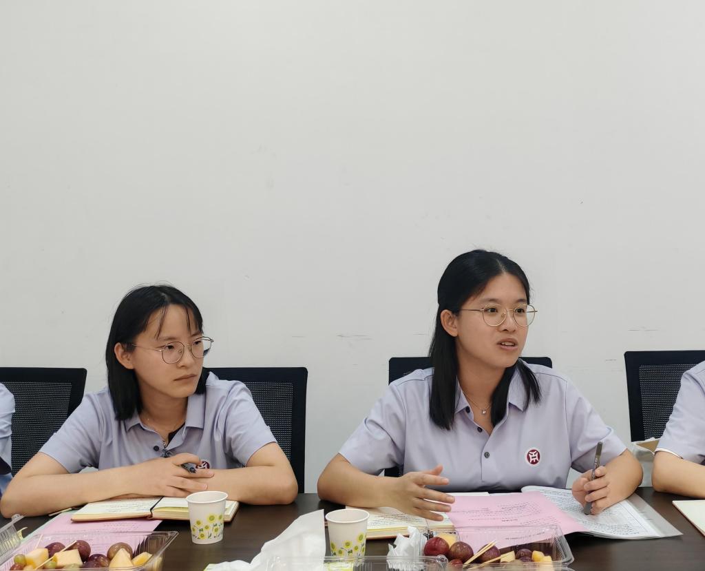 接下来,由辅导员谢树萍老师汇报文学院学生资助工作开展情况。谢老师详细介绍了学院关于“三金评选”(奖学金、助学金、励志金)的评选流程、标准以及近年来的资助成效。她表示,本年度的“三金评选”及资助工作开展顺利,同时,学院将继续优化评选机制,秉持“不漏掉任何一个家庭贫困学生”的原则,继续做好各项评选和资助工作,确保工作更加公平、公正、公开。