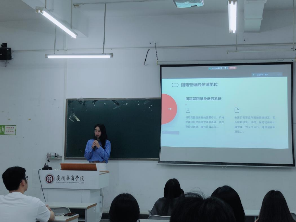 本次团课由文学院团委书记王怡荻老师、学生会指导老师丘淳苑老师,文学院肇庆校区团委杨佳林老师分别在两校区进行授课,旨在通过系统的学习和讲解,让广大团员青年深刻理解团籍管理的重要性,掌握规范的管理流程,培养青年的使命感与责任感,增强团组织的吸引力与凝聚力。