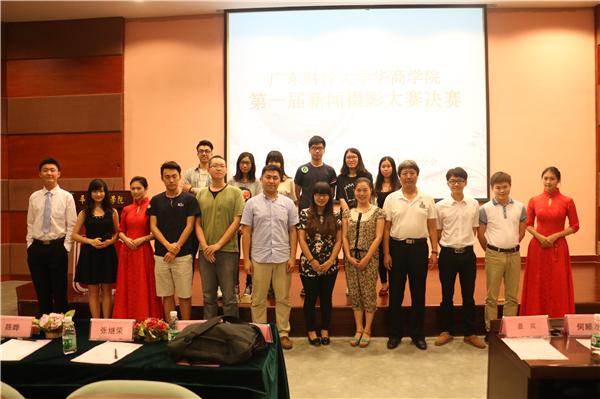 2015年5月8日19点10分,由广东财经大学华商学院文学系团总支学生分会主办、文学系团学记者团承办的华商首届“新闻摄影大赛”决赛于学院国际会议中心隆重举行。距离比赛开始还有一段时间,会议中心内已经人声鼎沸、热闹非凡。许多热爱新闻摄影的同学早早地来到现场入席,期待一睹选手风采。而担任本次比赛评委的有:华商学院办公室文秘科副科长、院报记者团指导老师陈晔老师,文学系分管学生工作副主任张继荣老师,文学系团总支学生分会书记朱明威老师,艺术系主任乌日图教授,ASI摄影协会会长杨任熙以及上任院报记者团摄影部部长刘岳昭。此外活动还邀请了文学系学生党支部书记何顺发老师,文学系辅导员谢清明老师等人作为嘉宾出席。