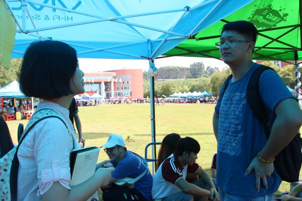 在壮大的迎新队伍之中,我们遇到了一位既不是工作人员也不是志愿者的师兄,他是13级汉语国际教育班的张塬同学。在没有加学分的情况下,迎新期间的他帮助了无数新生搬运行李,耐心地指导新生注册报到,奔波在整个华商的迎新行列之中。在采访过程中张塬同学表示:前几年的自己曾是一位志愿者,如今的他也如同以往一样,愿意用自己更多空闲的时间去帮助到更多需要帮助的新生,并呼吁希望更多的人可以加入到迎新的队伍中来。
