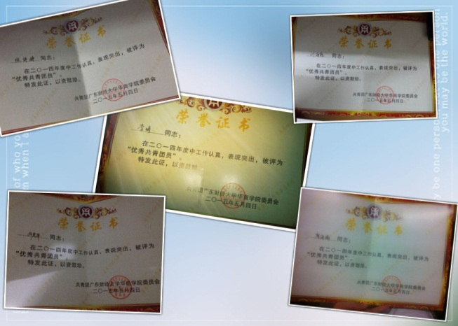 紧接着,在社团活动上,同学们投其所好的参与社团活动,参与社团人数共有49位,到达班级人数82%,参加文学系部门的共有28位,现已成为社团副部以上的同学有20位;踊跃参与各种知识竞赛,如汉字听写大赛、党团知识竞赛(有40位同学参加)、英语技能大赛、冷知识大赛、人际交往大赛、新生杯辩论赛等等,由此同学们也通过自己的努力,获得丰硕成果,如校运会同学们荣获优秀表现奖、积极参与奖,有多位同学获得系部“优秀共青团员”称号,获得系的辩论赛“最受欢迎辩论员”和“优秀辩手”等称号,以及社团的“优秀干事”等称号。