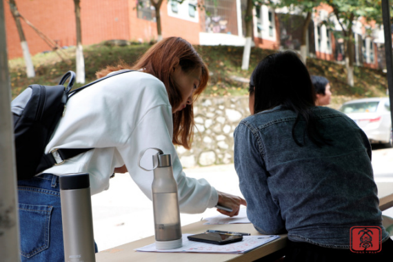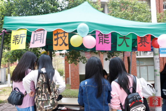 伴随着回南天过后的闷热,工作人员早早在指定地点搭好帐篷,挂上印有“新闻技能大赛”的手工标识语,并布置好摆摊现场。在摆摊现场,工作人员向同学们宣讲了此次新闻技能大赛的具体内容与意义,不少对此次活动感兴趣的同学被吸引来到摊位前,向工作人员做进一步的咨询,工作人员也都热情耐心地逐一回答。随着下课高峰期的到来,越来越多的同学走到摊位口咨询报名。