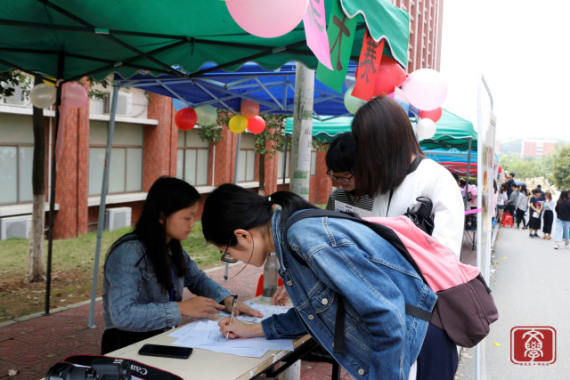 广东财经大学华商文学院文学系学生会记者团策划承办的“新闻之路,无冕之王”新闻技能大赛摆摊报名活动在三饭校道火热进行中。