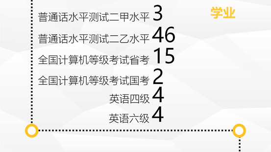在考取各类证书方面,本班同学积极参与。普通话水平测试二乙水平以上有49人。英语四六级方面,大一共有八人报考四六级。