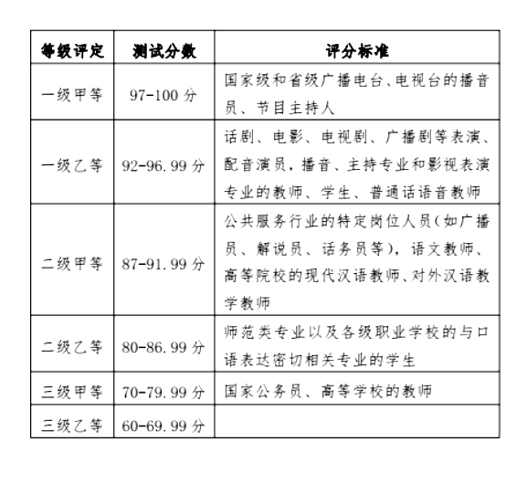 1.读单音节字词100个,限时3分50秒,占10分。目的考查应试人普通话声母、韵母和声调的发音。