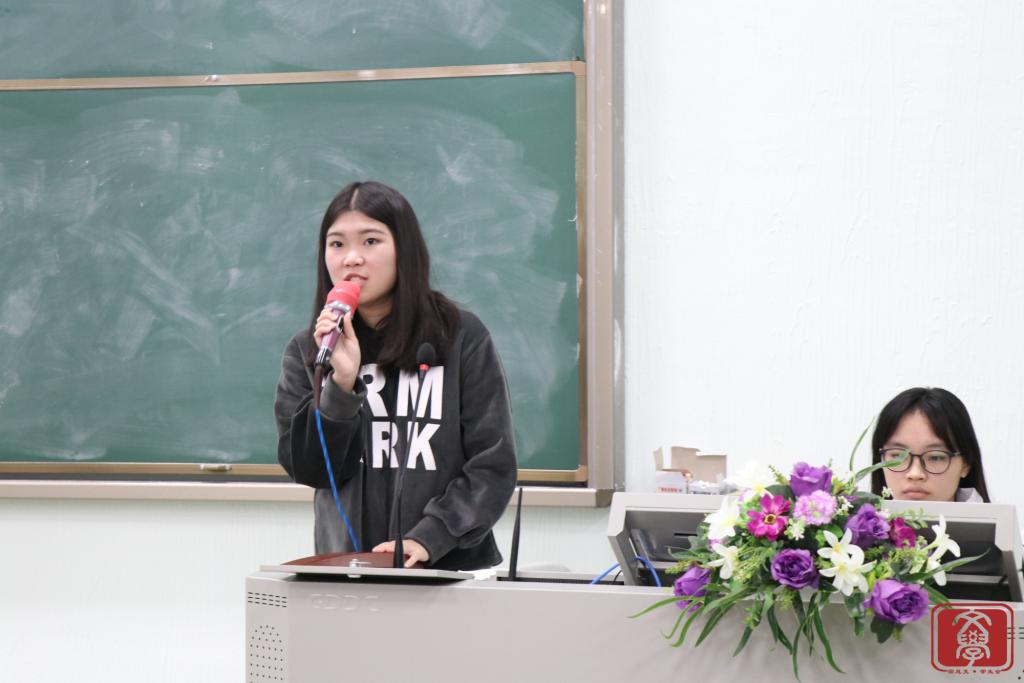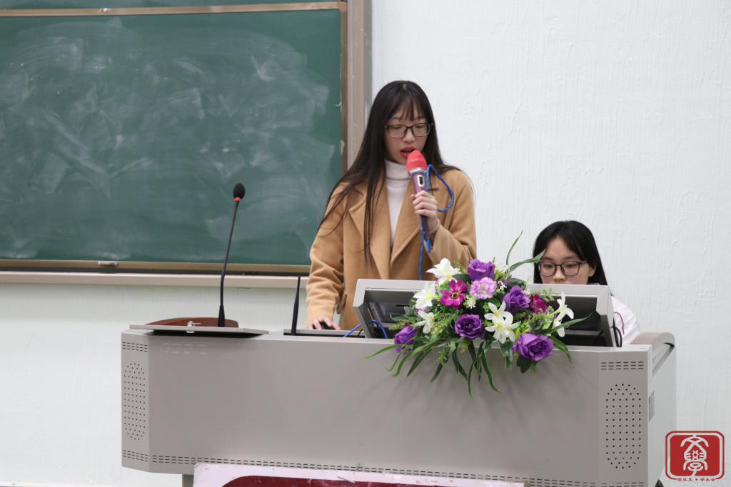 大会第三个环节,文学系团总支书记兼学生会指导老师丁洁老师为本次大会作总结。首先,她对团学各干部干事的付出表示衷心感谢,正是大家的努力付出,才让团学举办的活动得以“自动化”完成。接着,她表示在工作方面会严格要求各干部干事,尽心尽力,希望能与文学系团学一起成长。