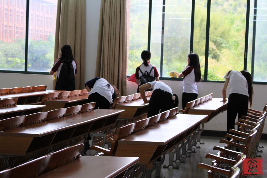 4月22日上午九时,文学系清扫活动参与人员在励志楼ABCD栋的107课室进行签到,随后校园清扫活动便如火如荼开展。此次校园清扫活动动员了文学系学生约五百人,按分配每个课室共有八名学生进行清扫。同学们不仅将地面打扫干净,抽屉,讲台等也都仔仔细细进行了清洁。记者现场走访发现,同学们都认真地完成自己区域内的清扫任务,并在打扫后进行检查。有的同学还将细微的窗户夹缝也拿抹布仔细擦拭。