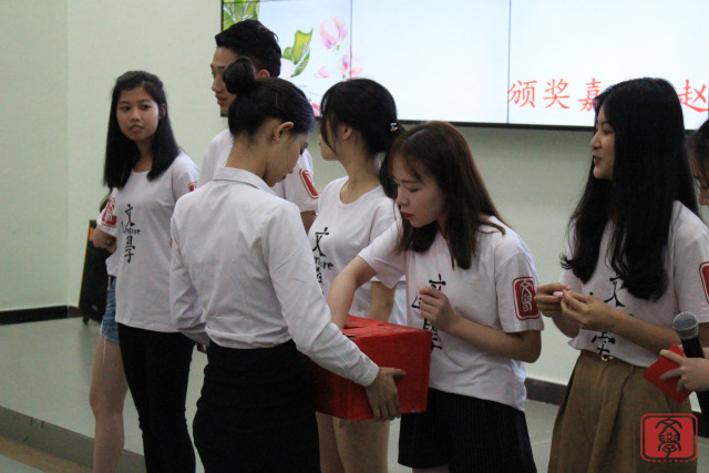 接下来分别由赵益老师和方钰霖,许佳楠以及张梦圆为优秀干部和优秀干事颁发奖状以及奖品。而优秀值班干事的奖项则由李国欣和郑小曼颁发。值得一提的是,每一位获奖者的奖品都是由自己在奖品箱中抽取的,在保持了神秘感的同时也让获奖的同学们感到十分惊喜。