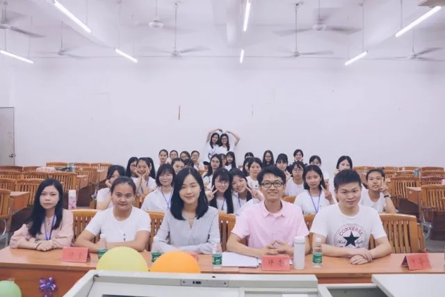 最后,全体参赛选手和嘉宾们以及工作人员上台拍照留念,文学系勤工助学中心 “自强之星”评选活动至此,圆满结束。