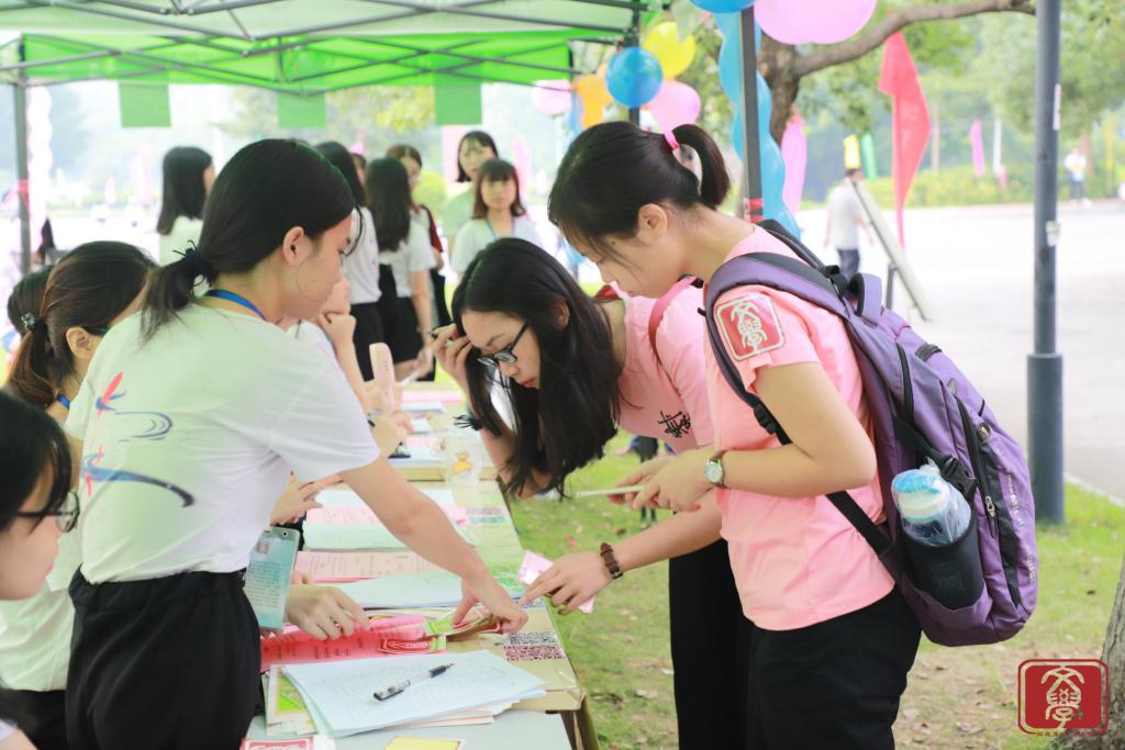 文学系的迎新大本营仍在面向图书馆左侧第一摊位。为了让新生顺利地完成报道,帐篷内设有休息区和行李寄放区,工作人员都热心地为新生家长递上一杯凉水,并亲切地说声:“叔叔阿姨,请喝水。”引导报道注册组的工作人员都积极地引导新生到图书馆办理报道的相关事宜。新生初来乍到,对学校的一切事物充满好奇和疑惑,工作人员都不厌其烦地为他们解答。此外,路上的工作人员都主动地帮助新生拎行李,宿舍楼下的志愿者们也都积极地帮助新生把行李搬到相应的宿舍。校园到处都有我们忙碌的身影,所有的工作人员都固守岗位,接待新生和家长时的亲切与问候、答疑解惑时的耐心与嘱咐、搬运行李时的积极与热心、报道注册工作时的认真与负责组成校园上一道靓丽的风景。尽管艳阳高照,但我们的热情依然有增无减。