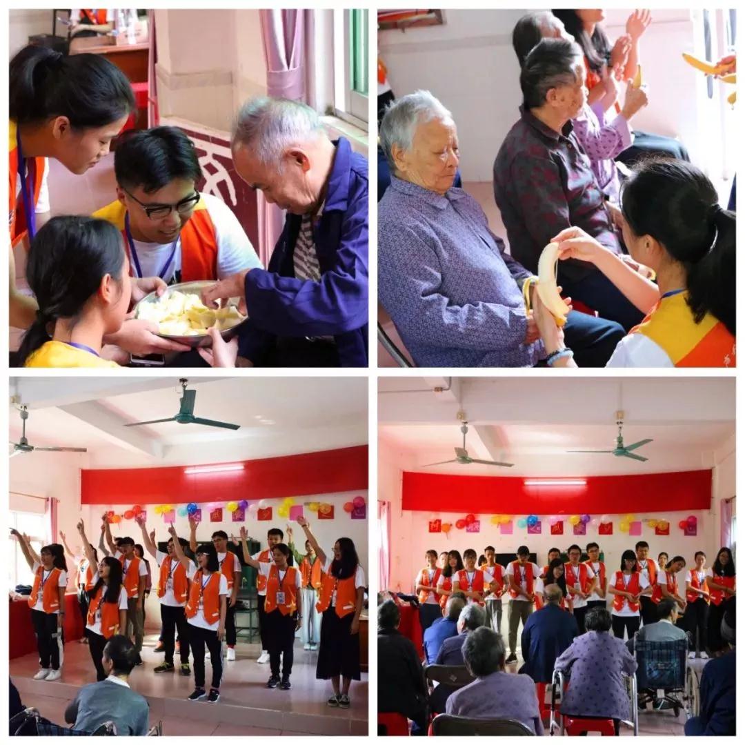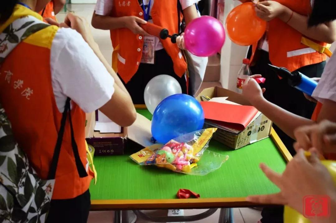2018年11月11日,广东财经大学华商文学院文学系青协分会组织慰问敬老院活动。早晨7点30分,校园门口早早聚集了32位披着志愿者服的华商学子,在朝阳中等候巴士的到来,期待着即将到来的敬老院探访之旅。短暂的车程后,志愿者们于8点30分抵达增城福和敬老院。此时天空已经一片晴朗,阳光在树叶间撒下,蓝蓝的天空,青葱的树木。志愿者们拎着为老人精心准备的礼物,来到了老人们平时娱乐的活动室,并开始布置场地,摆放凳子、张贴彩纸、布置气球。