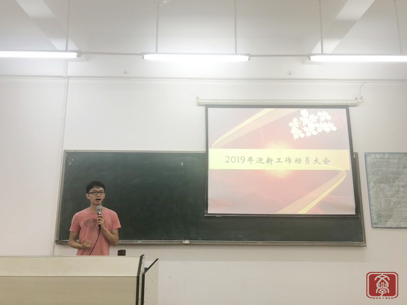 大会伊始,何顺发老师详细地解说了新生入学的日程安排,要求各位明确“什么时间做什么事”。紧接着,何顺发老师分别安排了迎新场地的布置以及志愿者的工作,他希望迎新工作人员要有信心,面带微笑,且要注意防暑。然后何顺发老师介绍了文学系以及传媒系的老师,老师们提出我们要自律、团结,各部门协力完成迎新工作。进入到提问环节,根据学生提出的问题,老师们也进行了详细的解答。最后何顺发老师提出我们是一家人,要同心同德,大家一起努力迎接新生到来。