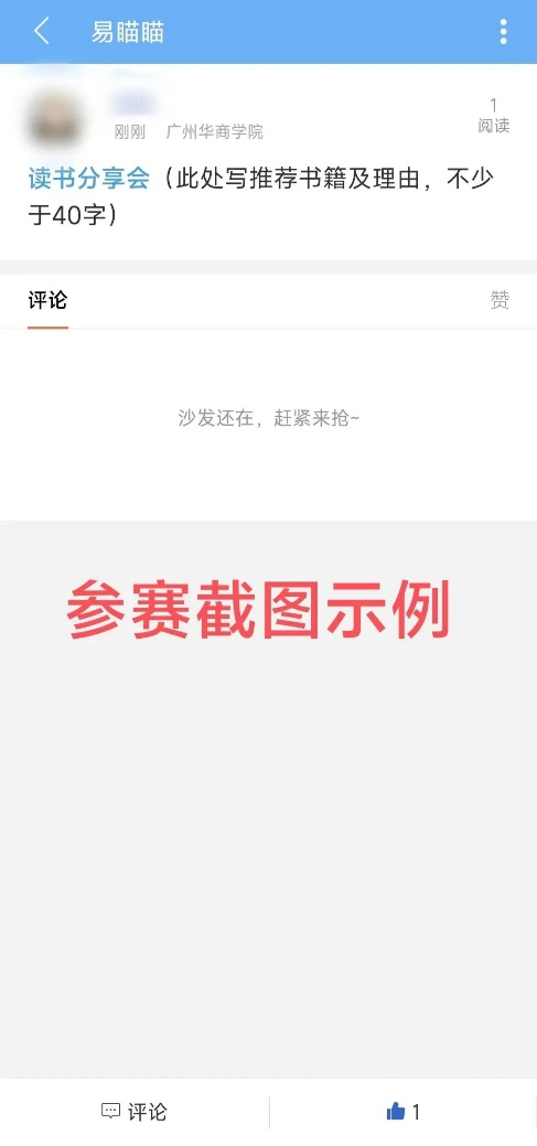 1.本次活动不限名额,在活动时间内登录易班app,在易瞄瞄内按要求发表符合主题的作品,即带#tag(#读书分享会#)发表自己推荐的书籍及理由。