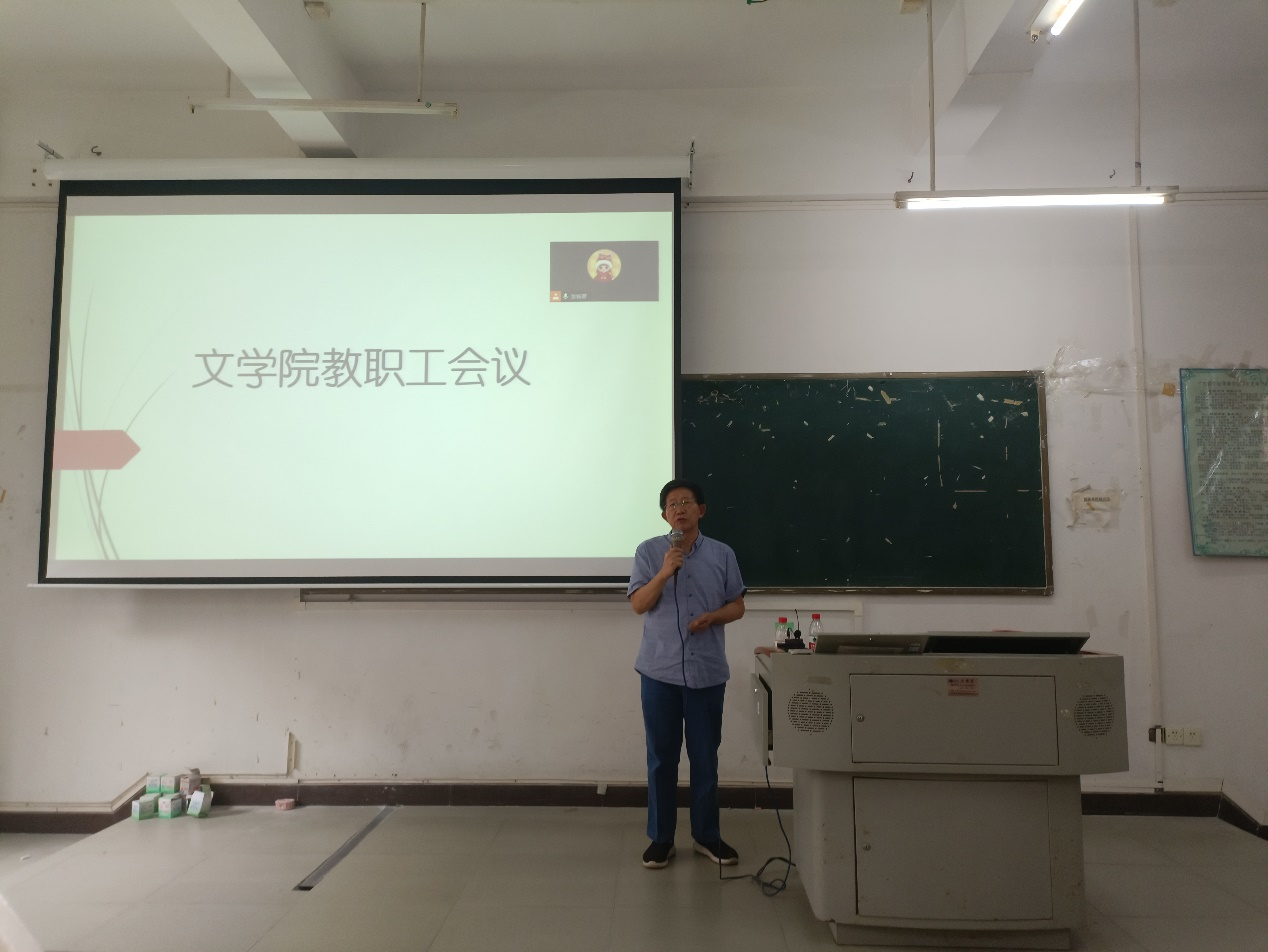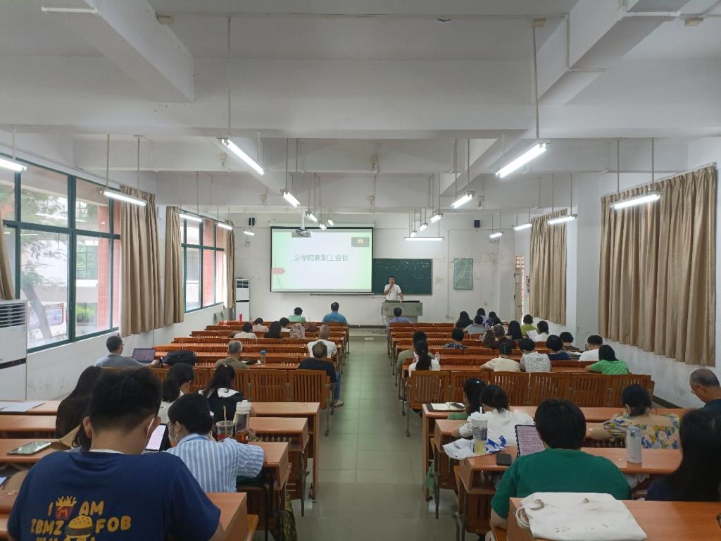 凝心聚力谋发展,笃行实干绘新篇。为切实保障新学期各项工作整体有序推进,激励全体教职工以崭新的姿态、饱满的热情投入到新学年的工作中,9月5日下午15点,文学院在励志楼B204课室召开新学期教职工会议,文学院院长苏桂宁、副院长蒋家国、伍世昭、党委副书记、副院长郭堪通以及文学院全体教师参加会议。