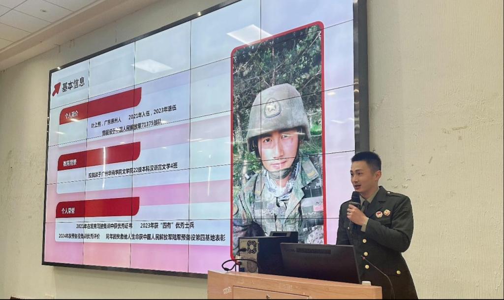 主讲人叶上熙,退伍大学生,现就读于文学院22级汉语言文学4班。该生2021年在坦克驾驶集训中获优秀证书,2023年获“四有”优秀士兵、2024年获预备役集训优秀评价、同年因挽救他人生命获中国人民解放军陆军预备役第四基地表彰。