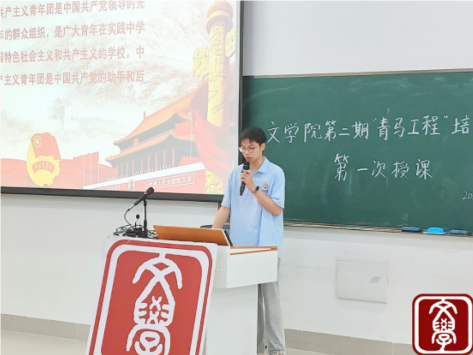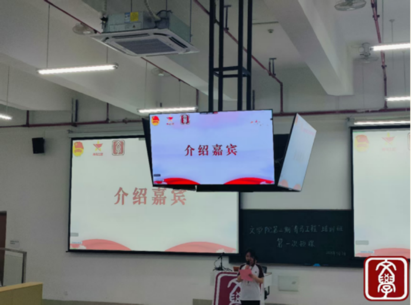 随后,主持人向大家介绍了出席本次授课的与会人员:文学院团委副书记何锦浩老师、文学院团委老师杨佳林老师,以及文学院第二期“青马工程”培训班全体学员。