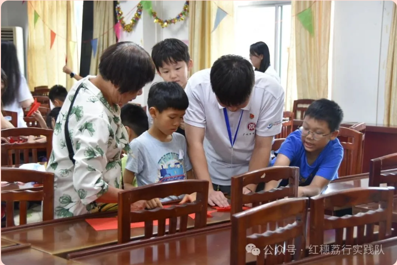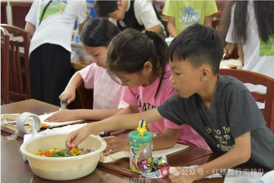 7月8日,广州华商学院文学院“红穗荔行梦之队” 在上境村夏令营的第二天课程开始啦。 上午的“植物拓印”和“非遗剪纸”超有趣!我和小伙伴敲草木、剪红纸,离老手艺好近,像摸到了传统文化的脉搏,原来它们一直在身边。 下午的“情绪英语”能说心里话,“诗歌拼贴”能剪小诗,表达感情的方式真多。 这四堂课呀,把老手艺和新想法搅成蜜,把聪慧和情愫织成锦。乡野童年像被撒了神奇种子,冒出好多新奇嫩芽,每片叶子都闪着别样的光!