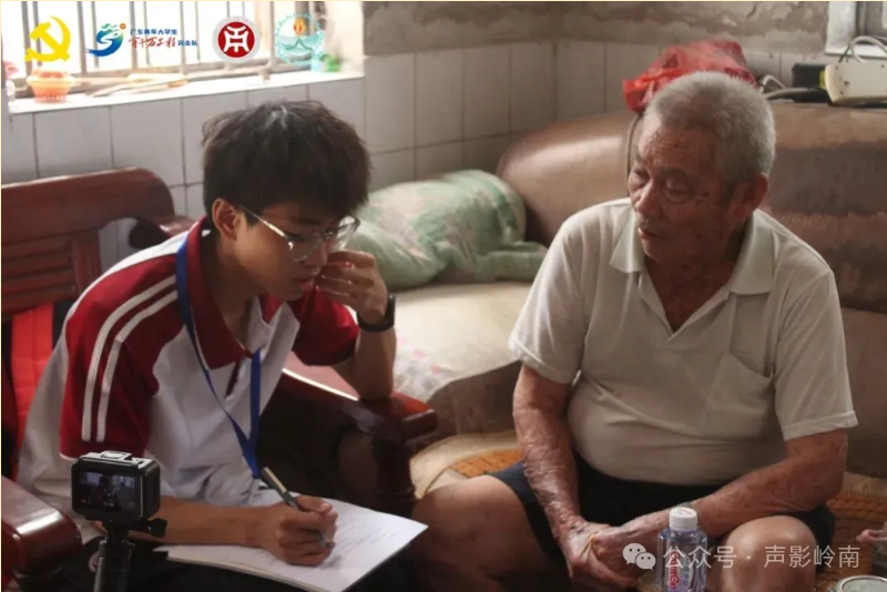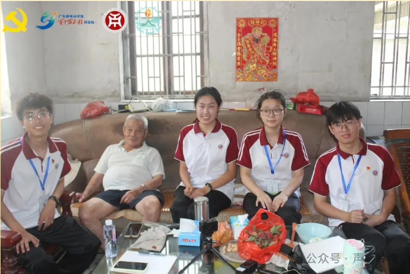 为积极响应“建设文化强国”与广东青年大学生“百千万工程”突击队行动的战略号召。广州华商学院文学院学生第二党支部“红炬薪传,声影岭南”实践队在仙村镇政府的大力支持下,与西南村村委和仙村镇社工站联合开展大学生党员暑期社会实践活动。实践队以口述史为调研方法,用声音和影像记录西南村村史文化与人文特色,不断推动岭南文化活态传承与乡村文化振兴深度融合。 2025年7月8日,“红炬薪传,声影岭南”实践队持续深入西南村调研,今日实践队队员们分别走入何景超、何锡球、何照明家中,用镜头和文字记录下一个个鲜活的历史片段,聆听老人们讲述这座村庄70年来的沧桑巨变。
