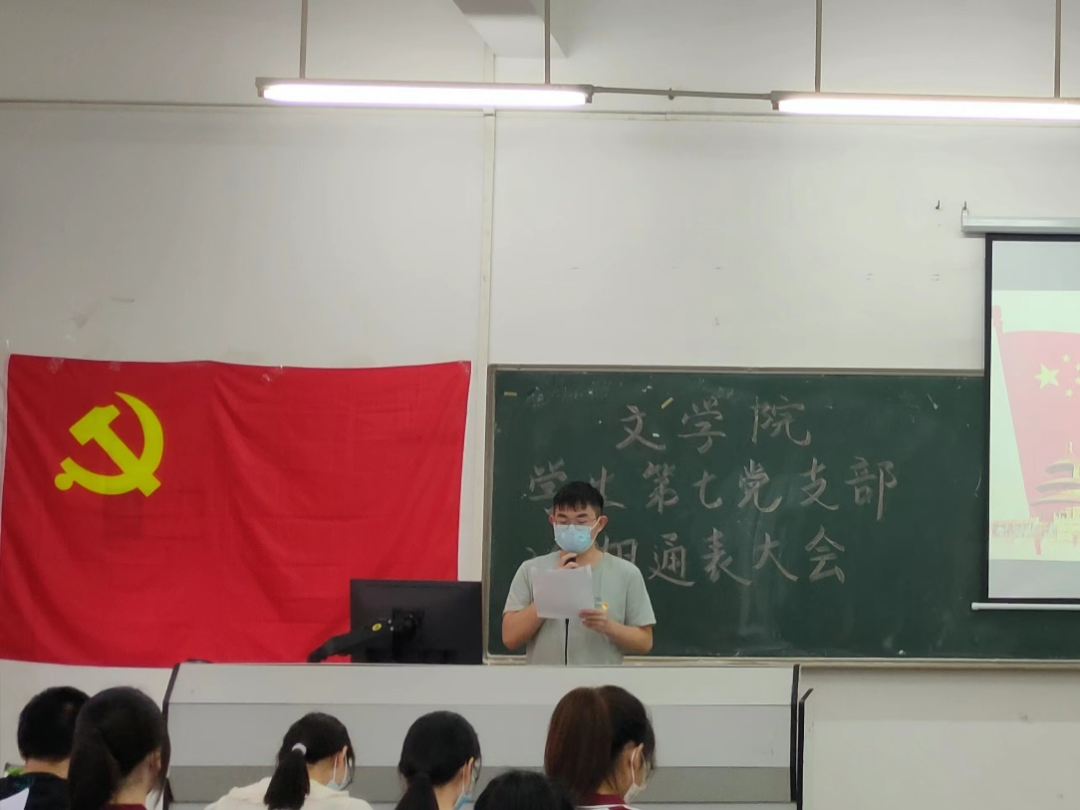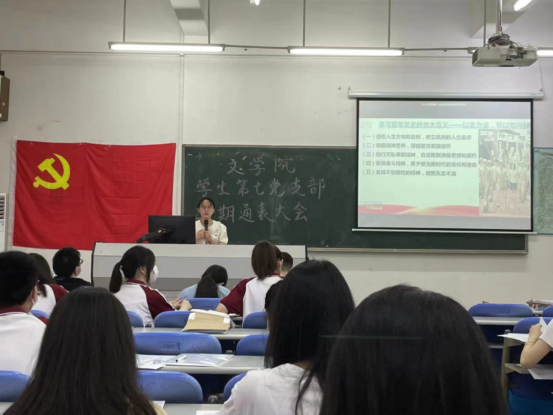 为推进党史学习教育,加强党员教育,文学院学生第七党支部于2022年5月27日下午16:00在励志楼A305开展党课学习。本次党课由文学院学生第七党支部书记为我们主讲《百年奋斗谋复兴,勇毅前行兴伟业》,参与党课学习的有文学院学生第七党支部副书记和各支委以及文学院学生第七党支部各学生党员。本次党课由温宇涛同志主持。