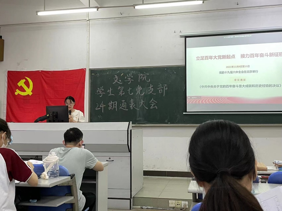 至此,文学院学生第七党支部党课圆满结束,希望各位党员同志能够以史为鉴、开创未来,埋头苦干、勇毅前行,以咬定青山不放松的执着,以行百里者半九十的清醒,在新的征程上更加坚定、更加自觉地牢记初心使命、开创美好未来。