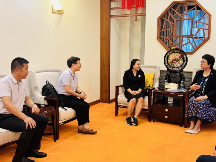 在使馆文化处,许兰参赞与泰国农业大学吴琼教授、文学院代表团等人士,围绕中泰教育发展议题展开深入座谈。双方聚焦中泰高等教育合作新模式、海外华文教育创新路径,重点探讨了人工智能技术在泰国本土中文教师培养、中文教学质量提升中的应用路径,就加强学术资源共享、师生互访交流等方面达成初步共识。