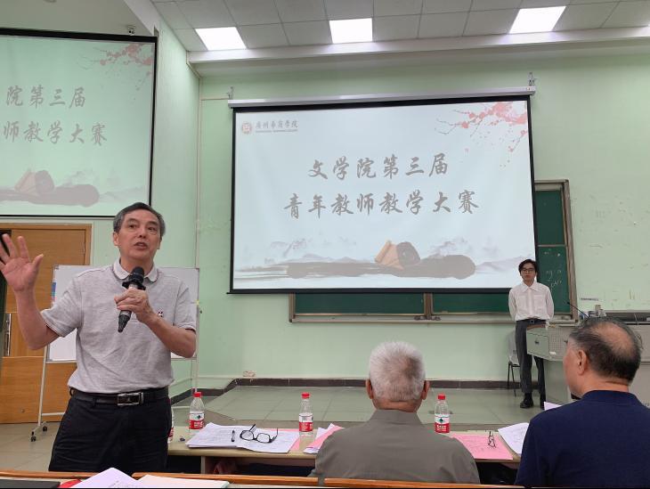 参加本次大赛的7位青年教师是文学院文学系、基础理论部、对外汉语系、大学语文部四个系部初赛选拔出的优胜者,根据赛事安排徐桃教授、赖华强教授、王树林教授、郭宝亮教授、于唤洲教授、王业兴教授和张干英教授担任大赛评委,从教学内容、教学组织、语言教态和教学特色四个方面对参赛教师进行点评并打分。文学院全体专任教师及各班学生代表与会观摹学习,院长助理于丹丹副教授担任比赛主持。