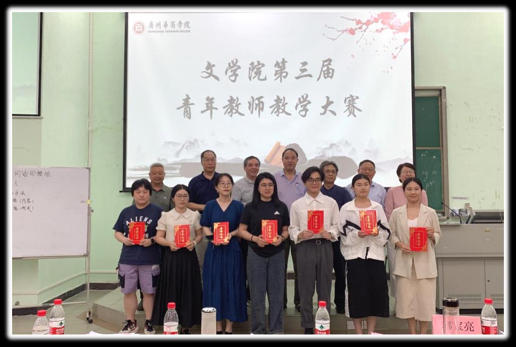 为锻炼年轻教师教学基本功,提高青年教师的教学水平,进一步提高我院的教学质量,5月28日下午14时,在广州校区励志楼A208举行了“文学院第三届青年教师教学大赛”。经过三个半小时的角逐,最终张金龙获得一等奖;吴钰婷、罗春菊获二等奖;门学坤、戴城乡三等奖;李宜萱、张璐获优胜奖。