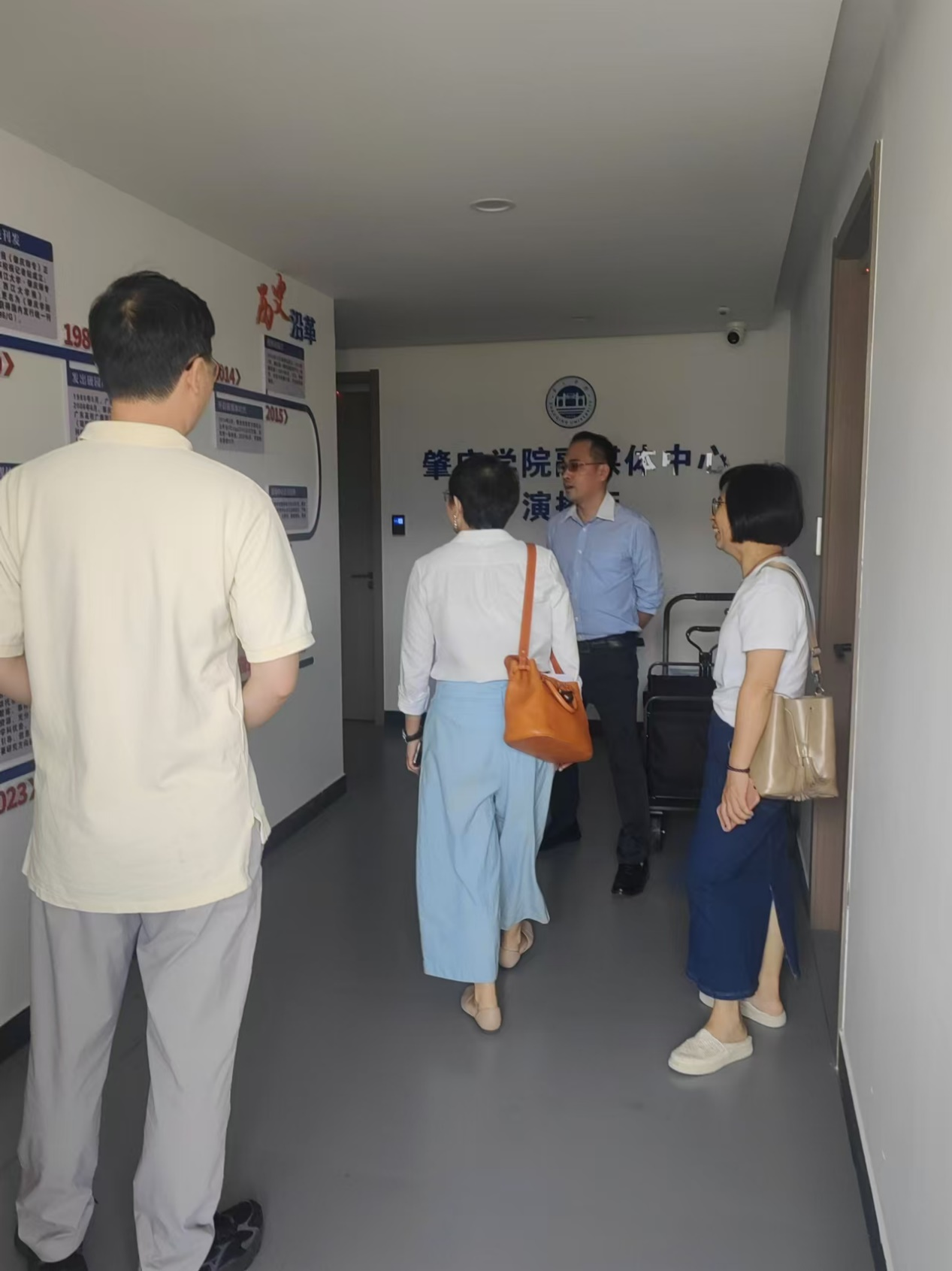 下午,华商学院文学院一行人在陈爱香副院长、苏常副院长、陈伟江主任陪同下前去参观了肇庆学院融媒体中心演播厅、省级实验教学示范中心、广播电视新闻实验教学中心等实践基地。学习肇庆学院省级基地和实验室建设中的优秀作法。
