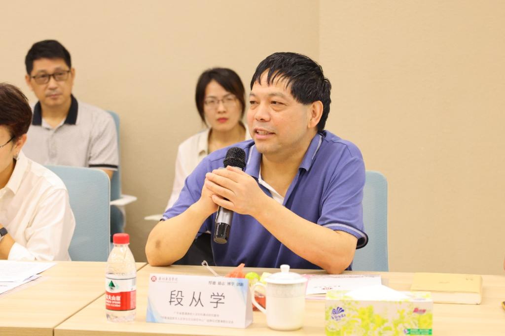 最后,学术委员会主任委员王列耀教授就研究中心“命运共同体与环南海国家华人文学发展研究”、“粤港澳大湾区与环南海国家华人文学互动研究”、“广东地域文化与环南海国家华商文化‘环流’研究”、“客籍文化、潮籍文化和东南亚华文文学与文化研究”四个研究方向,作了详尽而精彩的论证。