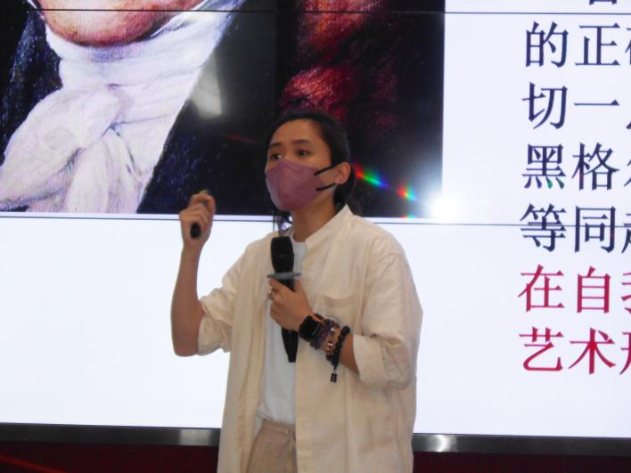 比赛环节中按抽签顺序,首先上场的是李高扬老师。李老师讲述《语言学概论》中“语言的分化”部分,她从阶层、职业、年龄、性别乃至文化程度和宗教信仰等方面着重介绍了社会方言的横向演化和融合,生动的例子帮助同学快速理解抽象理论。接着上场的是何嘉欣老师,她讲述的课程是《文艺美学》,将“黑格尔”的理念说用生动有趣的方式讲解的明白易懂。