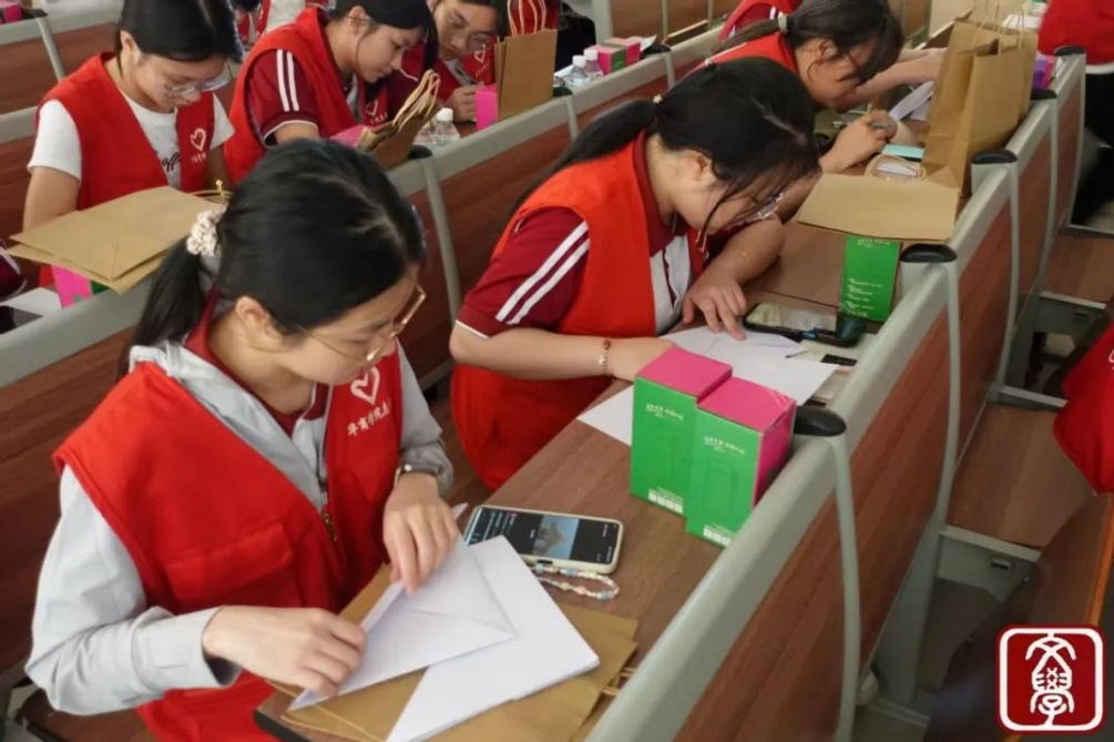活动第三项,工作人员开始分发明信片,各位志愿者纷纷拿起笔,认真地写下对日常为校园默默奉献的基层工作者的感谢话语。志愿者们结合自身经历,讲述基层工作者在工作中的辛勤付出和感人瞬间,用真诚换真心,用实际行动续写着雷锋的故事,让雷锋精神在不同领域、不同岗位上落地生根,开花结果。这些手写感谢信与精心包装的“暖心礼包”相得益彰--保温杯寓意“温暖常伴”,矿泉水象征“润物无声”,每一份礼物都承载着同学们的心意与敬意。