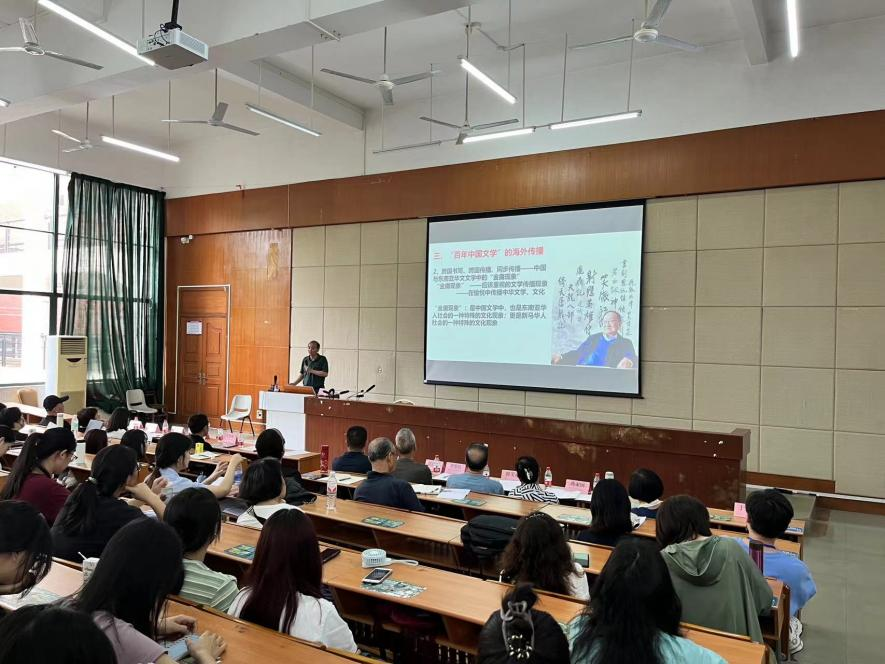 2024年4月28日下午,广州华商学院顾问王列耀教授应邀作“华侨华人与百年中国文学的海外传播”专题讲座。讲座由文学院院长陈少华教授主持,文学院党委书记、副院长郭堪通、副院长伍世昭、徐桃等嘉宾和300多名师生代表参加讲座。
