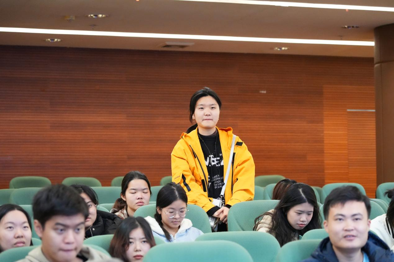 在互动环节中,同学们积极提问,宋教授耐心解答。针对“教师行业是否会受到AI浪潮的冲击”这一问题,宋教授表示,AI确实可能对教师行业产生一定冲击,但人类学者在捍卫尊严、传承文化等方面仍具有不可替代的作用。此外,宋教授还建议现场的教师应不断更新教学内容和方法,结合现代科技手段,使古代文学教学更加生动有趣,同时还提出了古代文学教学创新的具体办法,比如利用AI技术辅助教学,开发智能辅导系统帮助学生理解古文等。