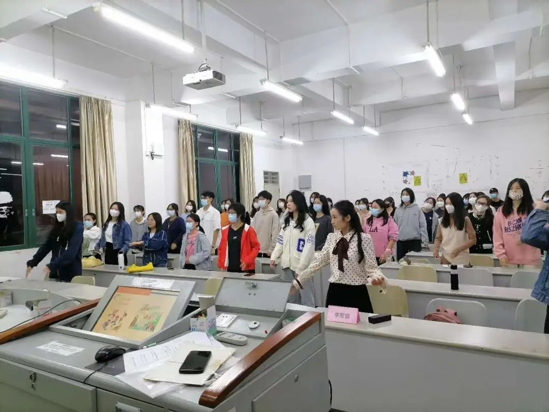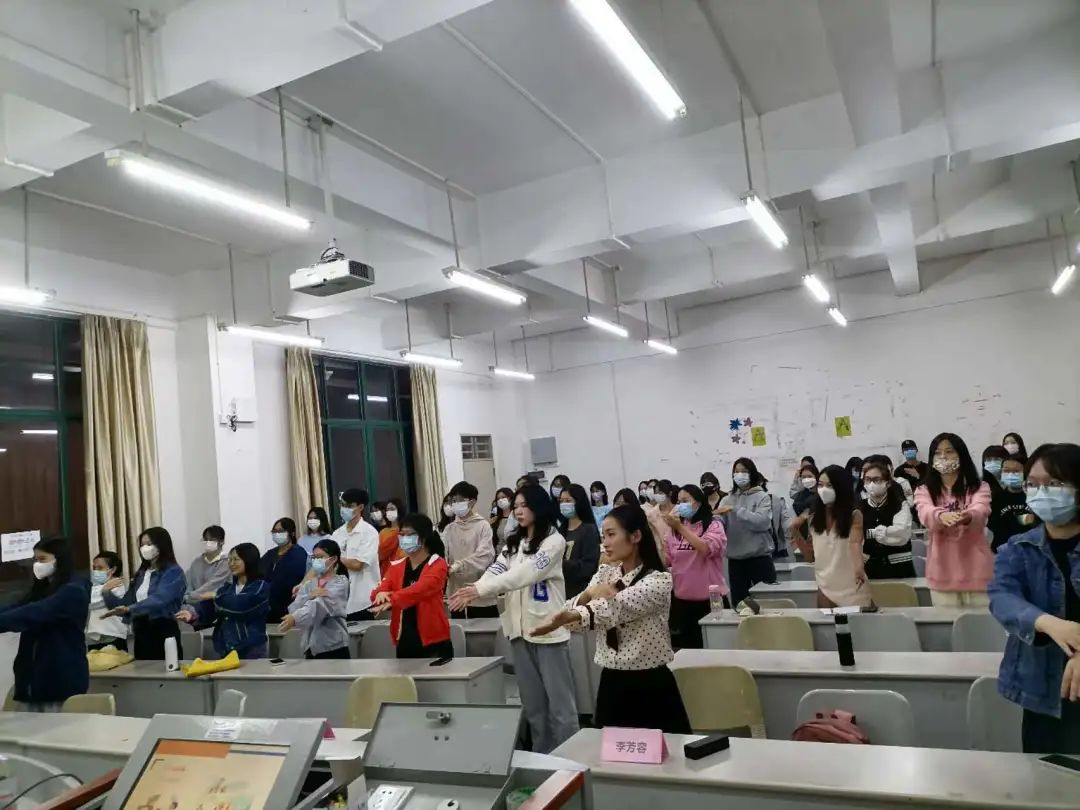 最后,王教授让全体同学起立,在她的带领下共同完成了一个简单的舒缓身心的体操。