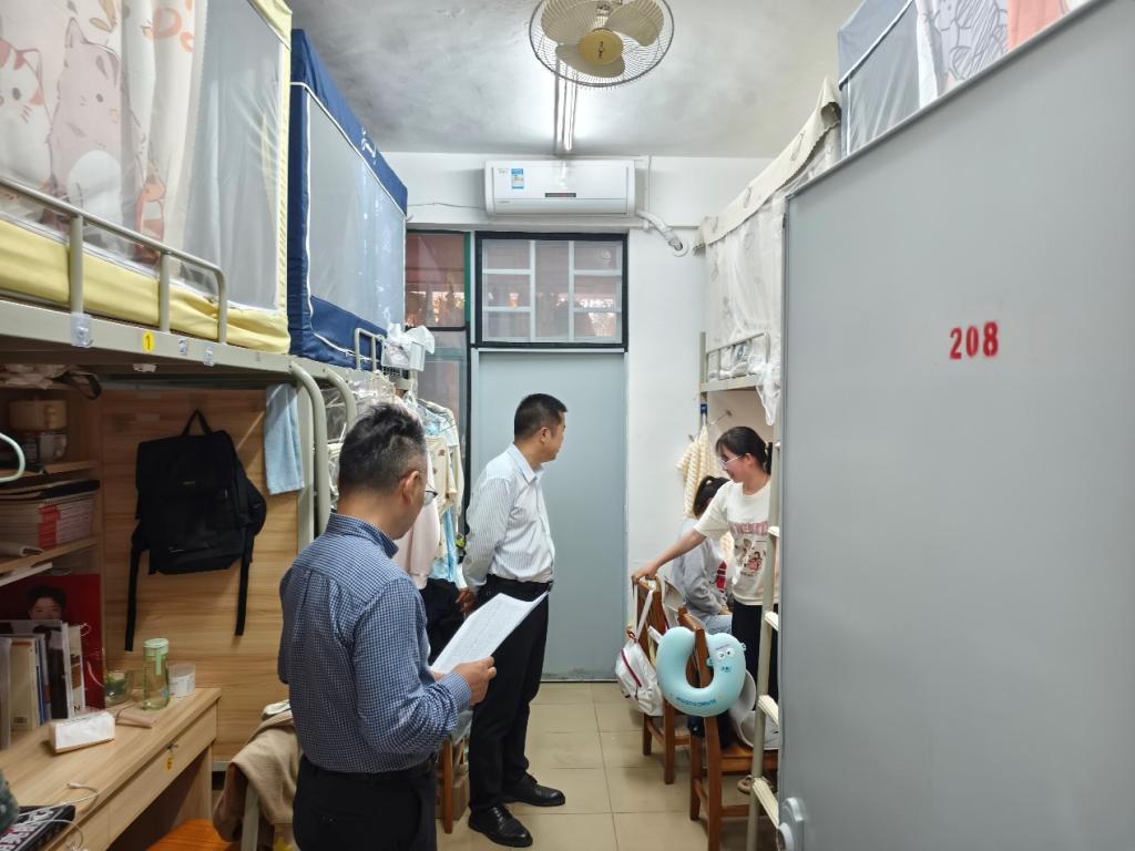 本次专项检查行动由学院党委副书记郭堪通亲自带队,文学院辅导员、团委、学生会、党群服务队等多部门联合参与组成专项检查组。检查组对两校区的宿舍进行了全面、细致的检查,重点对宿舍用电安全、消防安全、卫生状况等方面进行了排查。