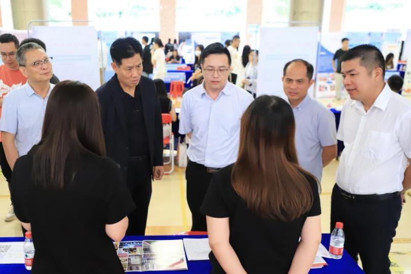 本次招聘会学校领导重度重视,学生就业创业处、文学院、外国语学院、教师教育学院等部门认真筹备组织,精准对接,共邀请77家企业参加招聘,涵盖了教育、外语、外贸、金融等多个行业领域,为求职者提供了200多个就业岗位,企业需求人数达1000余人。学校党委书记陈玉欢、副校长吕峻闽、副校长许娜、校长助理黄伟新、学生就业创业处处长曾龙威等校领导以及各二级学院院长等领导亲临招聘会现场了解企业招聘及学生应聘情况。